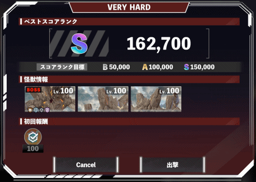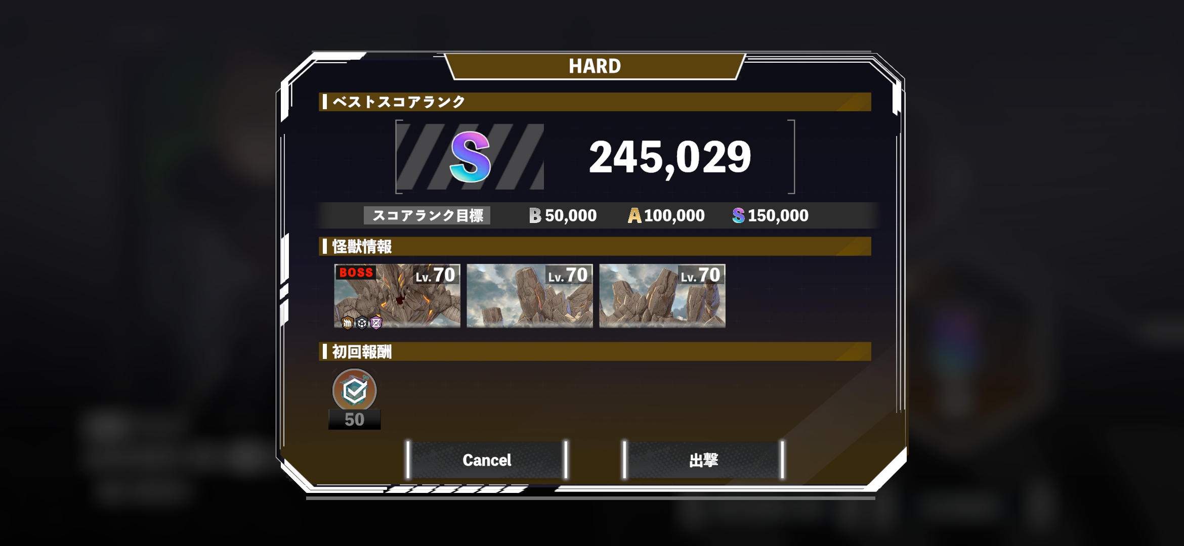 出来れば専用の武器も確保出来ていればSスコアでのクリアも見えてくると思います。